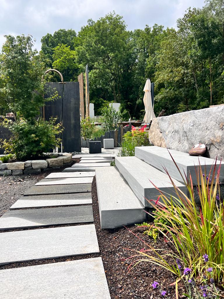 The stone tread is a natural stone piece that forms the walking surface of a step in stairs, being a popular option for projects seeking durability and an elegant aesthetic. The stone tread offers resistance to wear and abrasion, making it ideal for high-traffic stairs in both indoor and outdoor environments. They are applied in homes, commercial buildings, gardens, and landscaping, complementing the aesthetic of any architectural project.